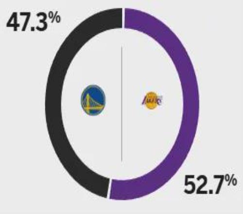 ESPN预测湖人vs勇士揭幕战:詹姆斯缺阵,湖人胜率52.7%